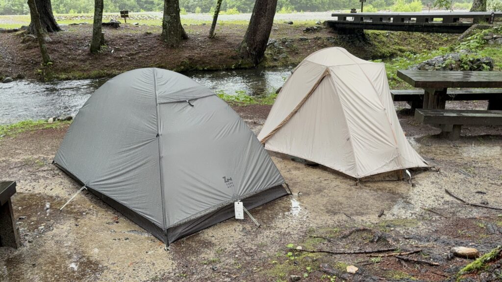 私もその一人ですが、今回、北アルプスの玄関口・上高地にある「小梨平キャンプ場」にて、このテントの真価を問われる過酷な状況に遭遇しました。2025年7月、降り続く土砂降りのなかで1泊2日を過ごして見えてきた、スペック表だけでは分からない「リアルな耐候性」を徹底レビューします。